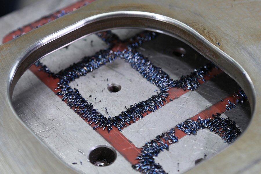 Elle s'adapte facilement aux bords droits, contours ou petites pièces en acier, inox ou aluminium.