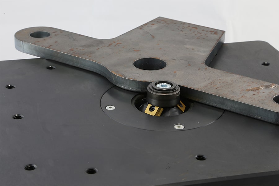 La SMT 30 se distingue par ses réglages précis et intuitifs. La molette dédiée permet d'ajuster finement la longueur du chanfrein ou le rayon (R2 à R4), tandis que le guide assure un positionnement constant de la pièce. La machine accepte des chanfreins de 1 à 8 mm, selon le matériau et la roue de guidage utilisée, et peut usiner des rayons continus grâce à ses plaquettes carbure spécifiques. Polyvalente, elle garantit une qualité de surface constante aussi bien sur l'acier (1–6 mm) que sur l'inox (1–3 mm) ou l'aluminium (1–8 mm). L'ensemble forme une solution fiable pour la préparation de bords, le chanfreinage en V, K, X ou Y, et les opérations de finition nécessitant un excellent rendu.